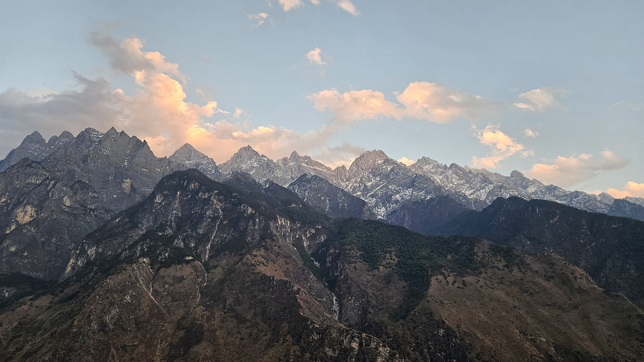 저녁노을과 아침 햇살이 비춰지는 옥룡설산의 모습은 또다른 느낌