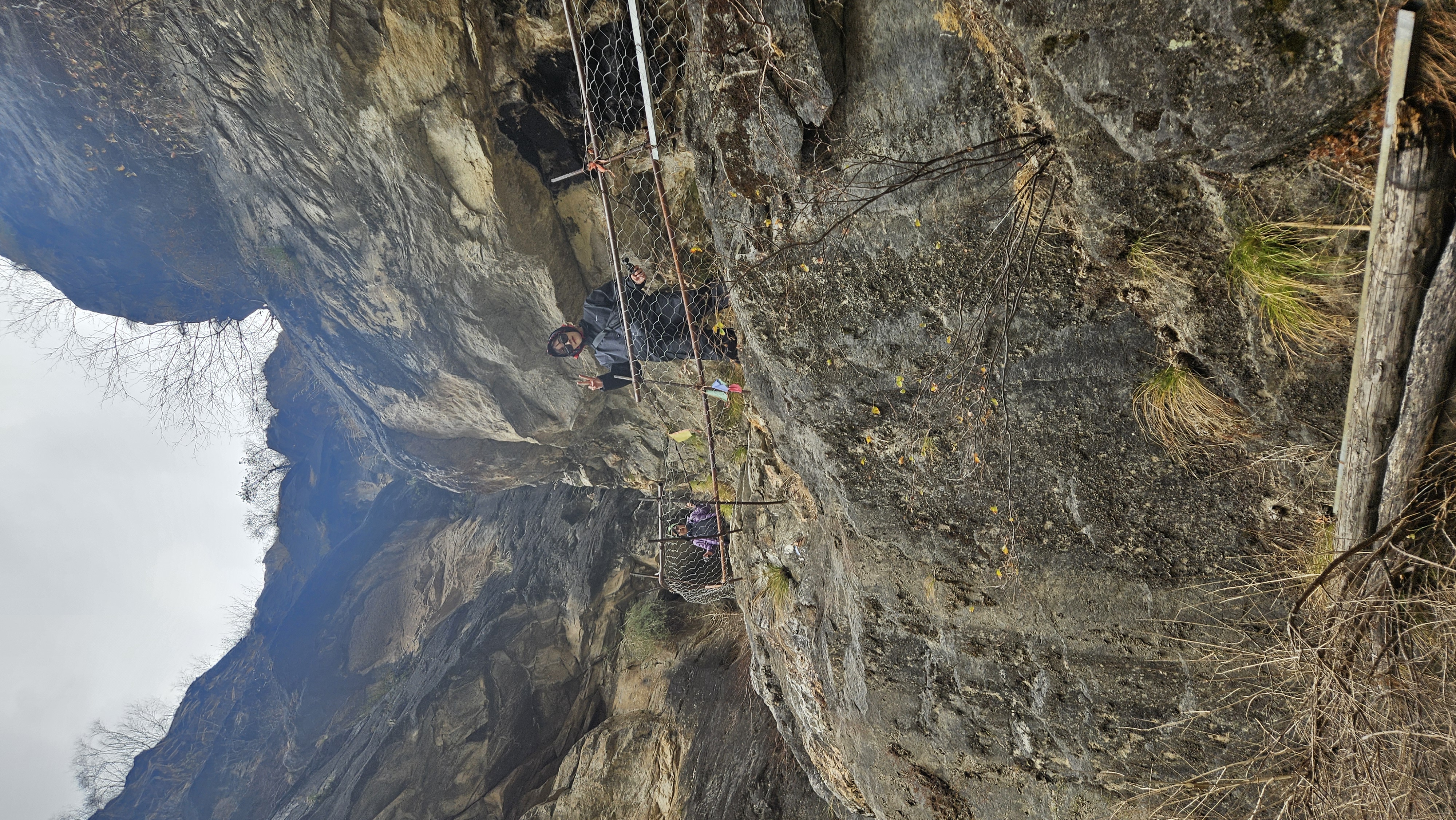 가파른 고갯길과 거친 바위 절벽을 따라 걷는 길